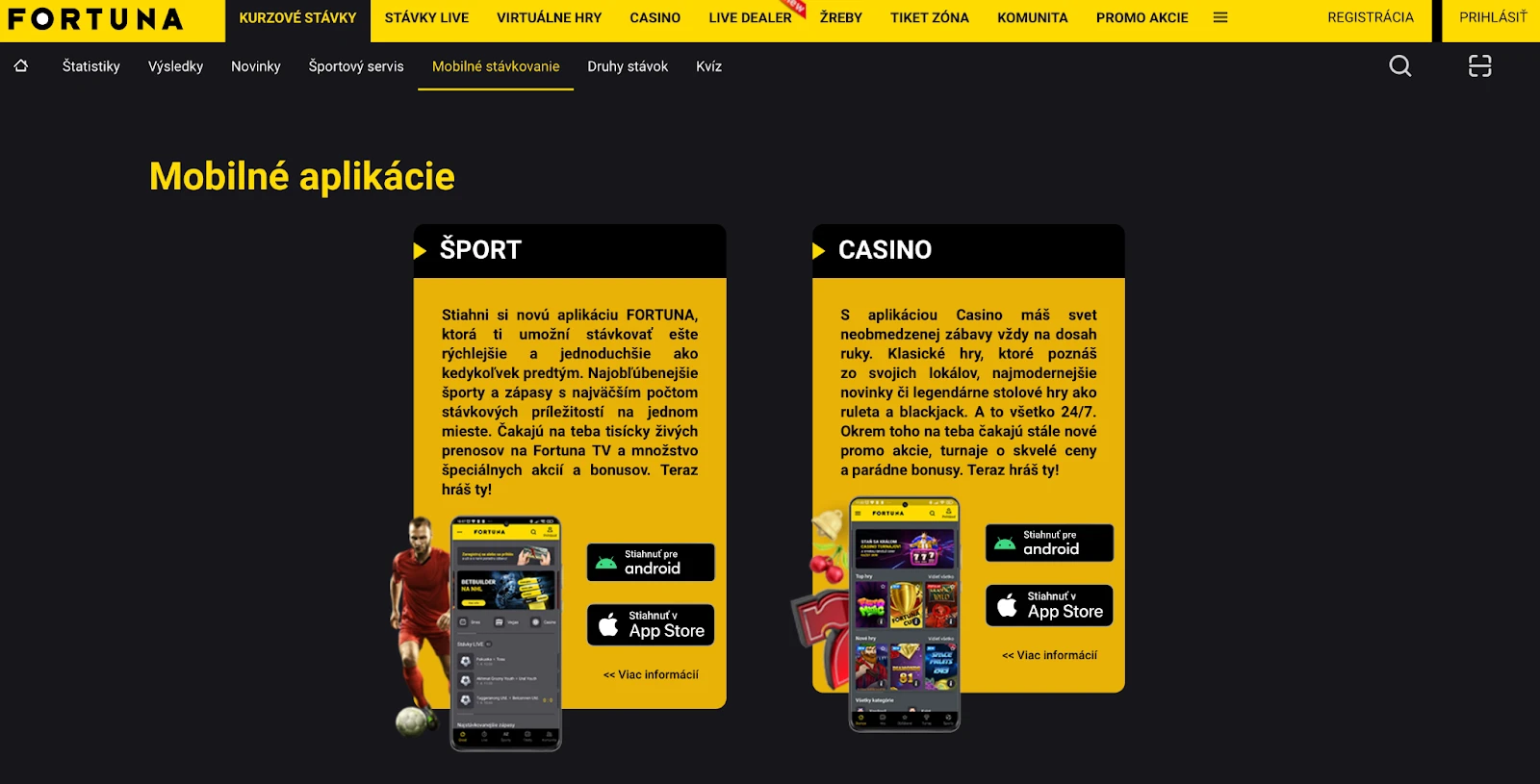 Pokiaľ vás láka iba hranie v kasíne a stávkovanie nie, fakt, že spoločnosť Fortuna má pre tieto záležitosti samostatné mobilné aplikácie, vás určite poteší.