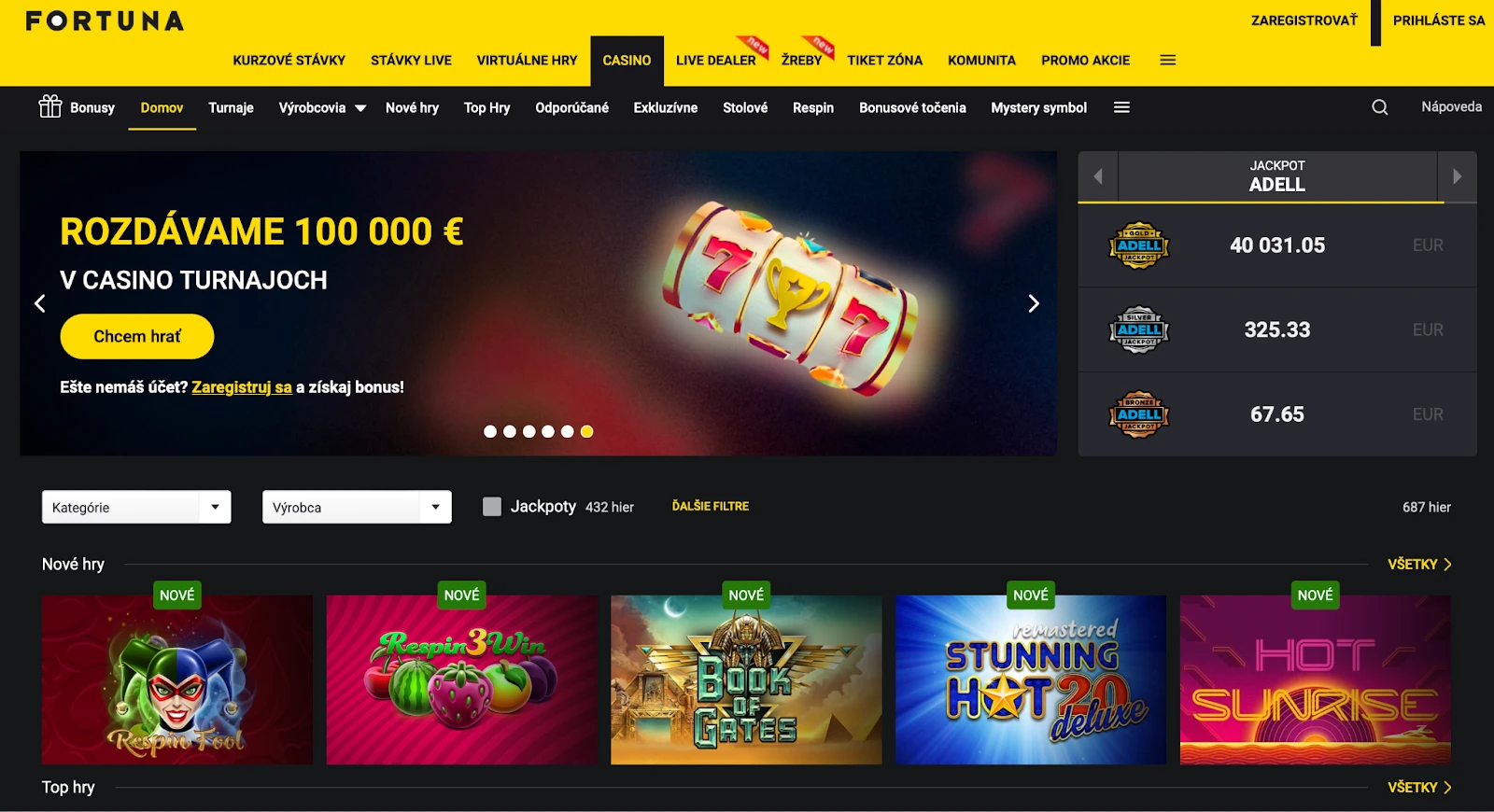 Za zmienku stojí aj to, že na hlavnej stránke kasína si hráči môžu jednoducho nájsť nové hry, TOP hry, hry, ktoré Fortuna odporúča, stolové hry alebo respin hry. Všetko je tu prehľadné, čo hráčom vylepší zážitok z hrania.
