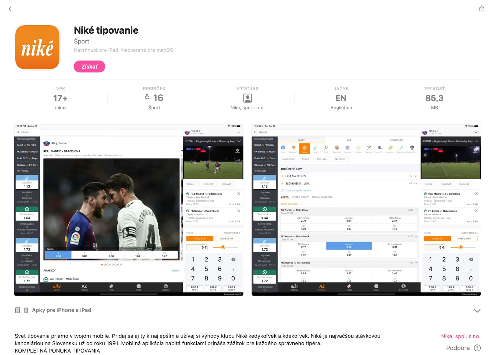 Niké tipovanie aplikácia