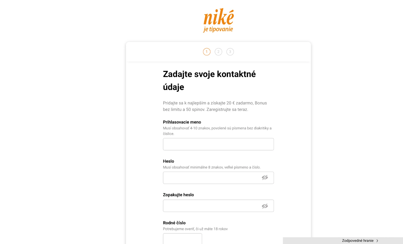 Niké vstupný bonus