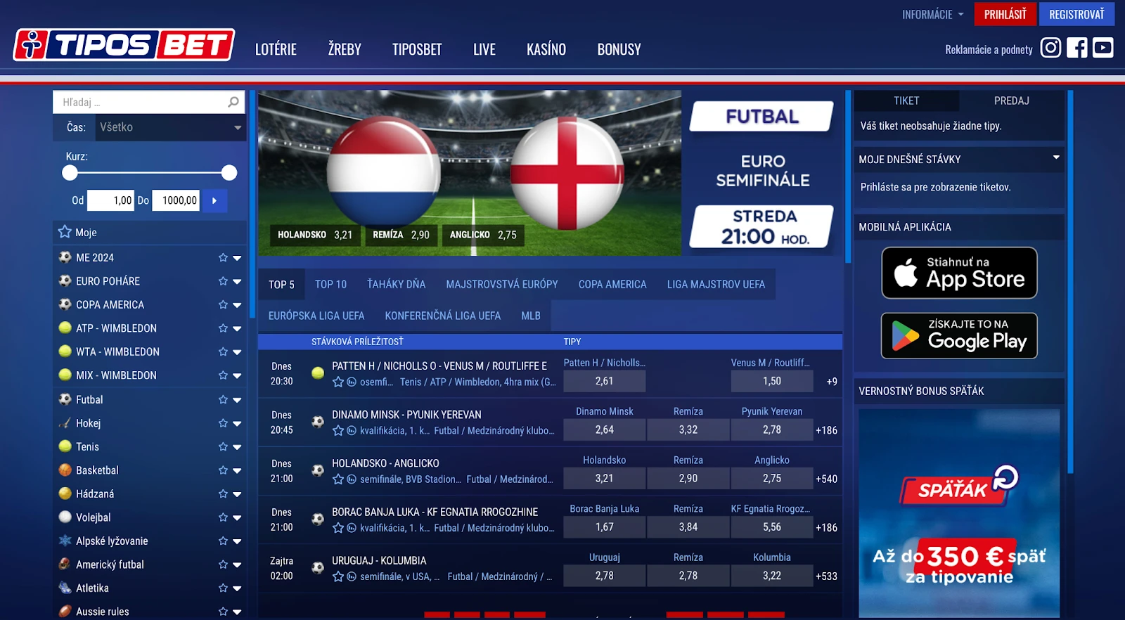 Pozrite sa, ako vyzerajú kurzy v stávkových spoločnostiach Tiposbet, Tipsport a Niké pri zápase medzi Holandskom a Anglickom na turnaji EURO 2024.